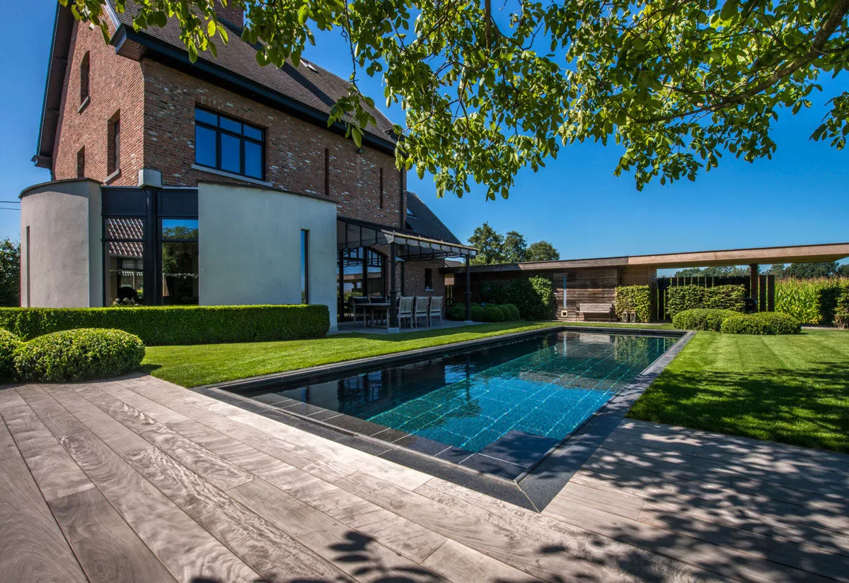 Het BIO-zwembad biedt een ecologisch verantwoorde manier van zwemmen, waarbij het water op een natuurlijke manier wordt gefilterd. Dit zorgt voor een verfrissende ervaring in een natuurlijke setting, waarin de tuin en het zwembad elkaar aanvullen.